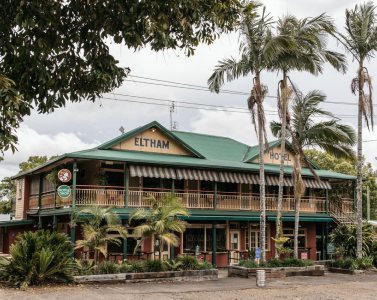 Eltham is a historical town located 15 kilometres north of Lismore and 26 kilometres northwest of Ballina. It is famous for its pub known as The Eltham Hotel, offering meals, drinks, live music and quirky accommodation. You can also play a game of tennis and view the beautiful old Eltham Railway Gatekeeper's Cottage and bridge site.
