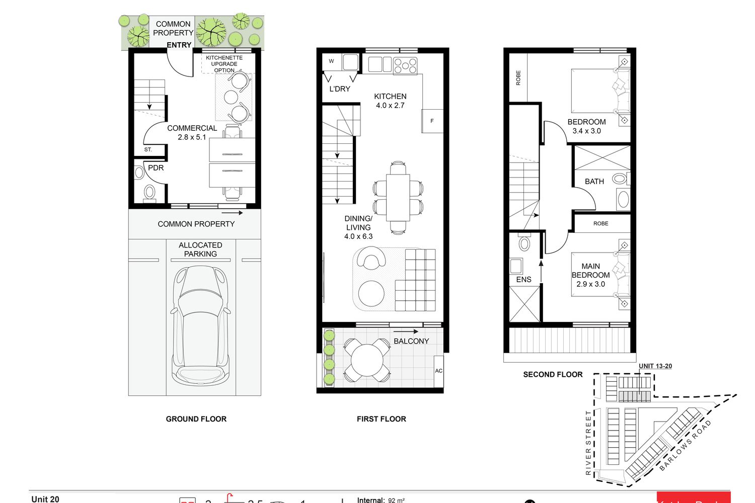 Upstairs, air-conditioned open-plan living flows to a designer kitchen with Miele appliances and natural stone benchtops. Light-filled bedrooms, sleek bathrooms with natural stone vanities, and the home’s design embraces passive house principles, including 2.2kW solar on the roof (upgrades available for a larger solar system and battery), providing an energy-efficient, healthier future.