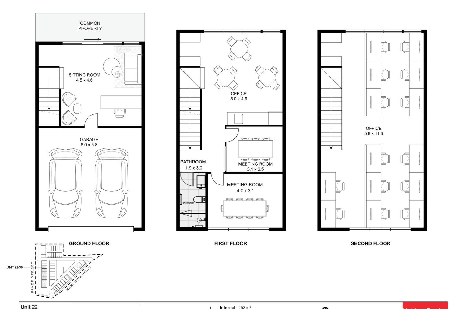 With a larger overall floor area and a double lock-up garage, Unit 22 offers enhanced functionality and flexibility, making it particularly appealing to businesses requiring additional space for operations, storage or staff.