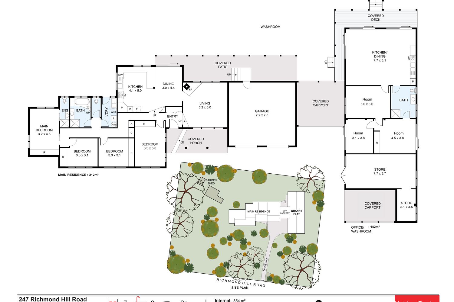 + The separate office/storeroom is modern and spacious, offering a kitchenette with gas cooking, large air-conditioned room, plus three other rooms, a large bathroom, private covered deck with valley views and its own gas hot water system