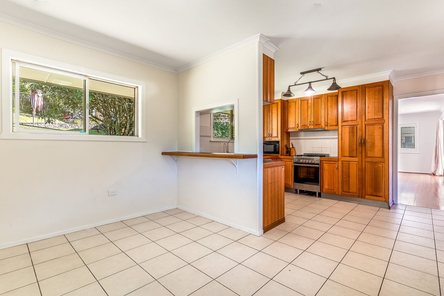 + Functional timber kitchen with gas cooking, electric oven, dishwasher and a handy servery connecting through to the dining space